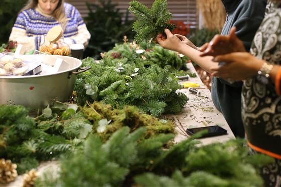 All Materials Provided: You won't need to bring a thing! We supply all the high-quality, fresh, and beautiful materials—including seasonal greenery, pinecones, berries, ribbons, and dried elements.